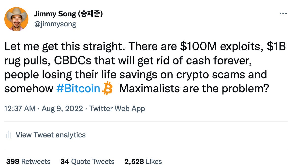 For free subscribers: Authenticity, Death of Rent-Seeking, Quantum Slight-of-Hand, Villianous Men, Protester's Veto and more! For paid subscribers: High Availability Nodes, Dependency Minimization, Channel Factory Reframe, Routing Profitability, Stablecoin President, Sub-sat/vbyte Economics and more!