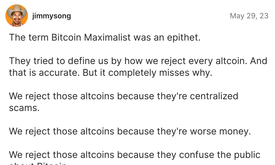 For free subscribers: Comfort vs Community, Mercy's Value, Debased Romance, Fiat College, Trailblazing Anguish and more! For paid subscribers: Consensus Cleanup, LN Spam prevention, Gamestop BTC, Mining Economics and more!