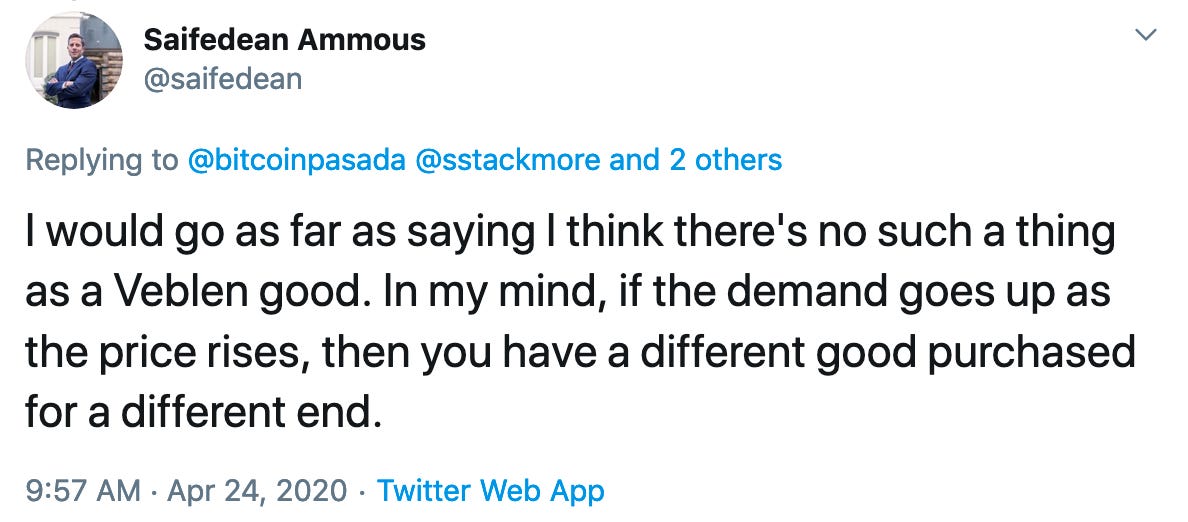 One very strange phenomenon in economics is the one of Veblen goods. These are goods whose demand goes up when the price goes up.