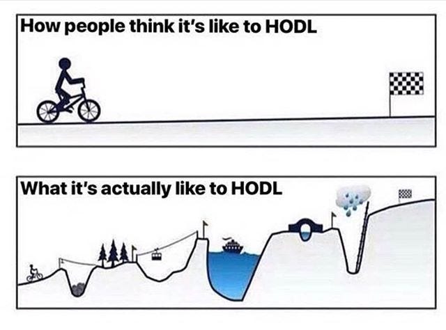 HODL! Or so goes the mantra for everyone during price dips. The meme is a tacit acknowledgement that there is a lot of volatility in Bitcoin and holding through the dips is difficult for most people. The idea of HODL is that iron tenacity and significant conviction is what is needed to weather the storm of the often violent downward spikes that are so common in Bitcoin.
