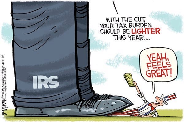 In a sense, this is truly a crazy system. We could eliminate all taxes, abolish the IRS and eliminate a ton of needless bureaucracy, but we don’t because it would destroy people’s illusions about the monetary system. Taxes are revenue theater, a show to deceive us about our monetary system.